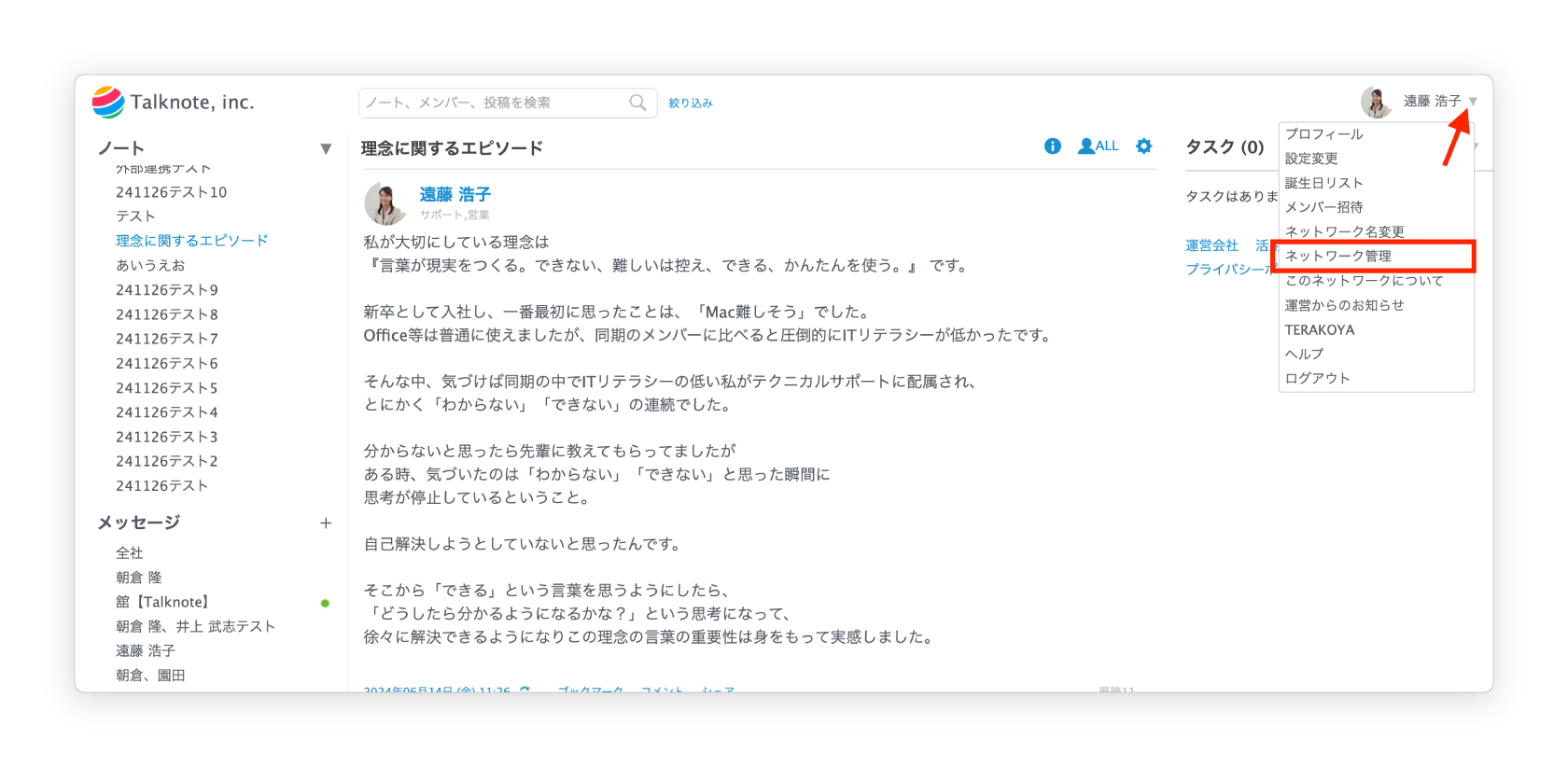Talknote全体に関わる通知や細かな設定をおこなうことが可能です。