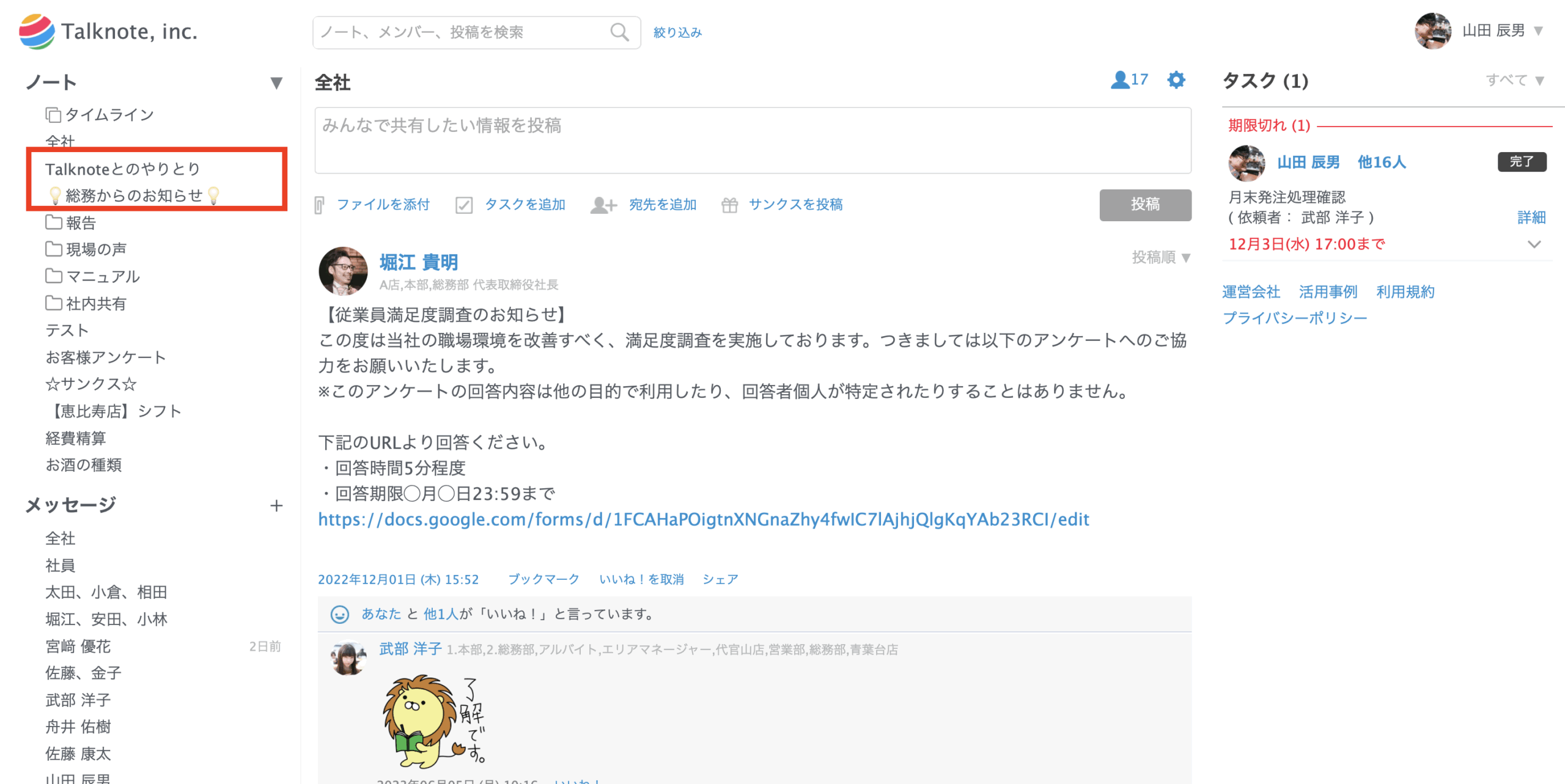 共通上部固定ノートとは、管理者が指定したノートを、すべてのメンバーの「ノート一覧」の上部に固定表示できる機能です。